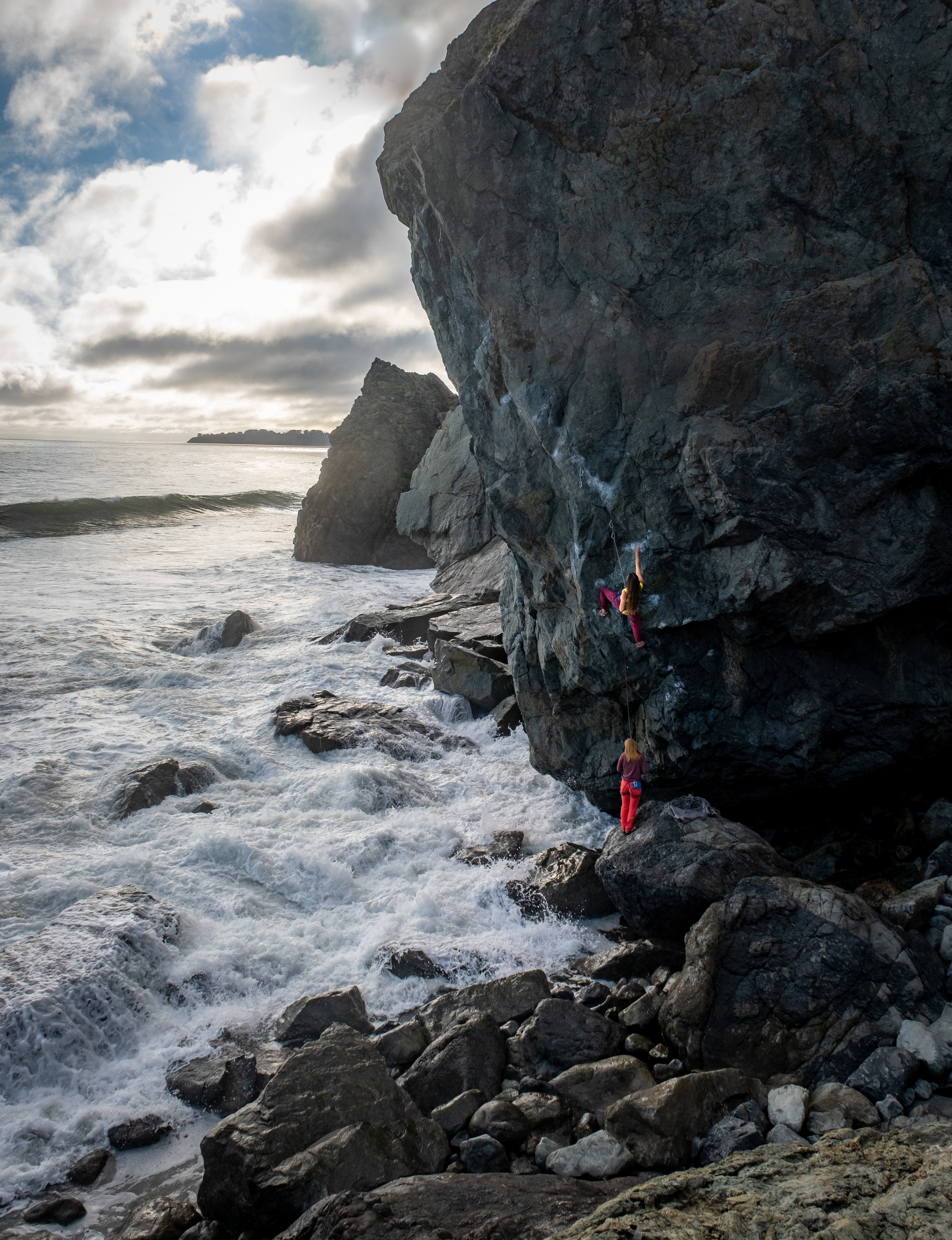Bella Tidmore making her way up the wall as the tide rises at Mickey’s Beach